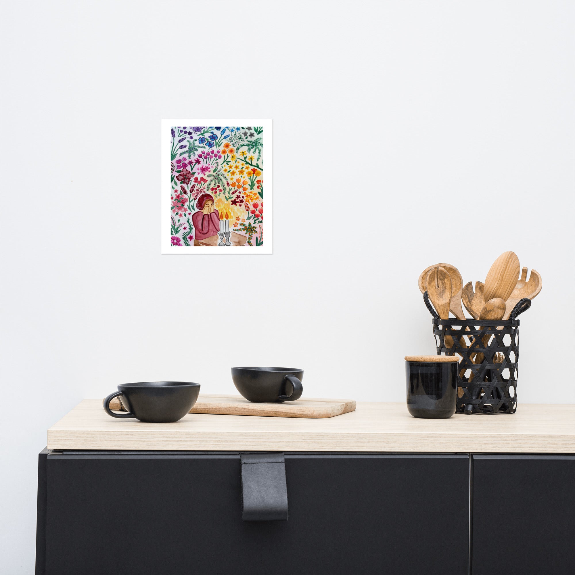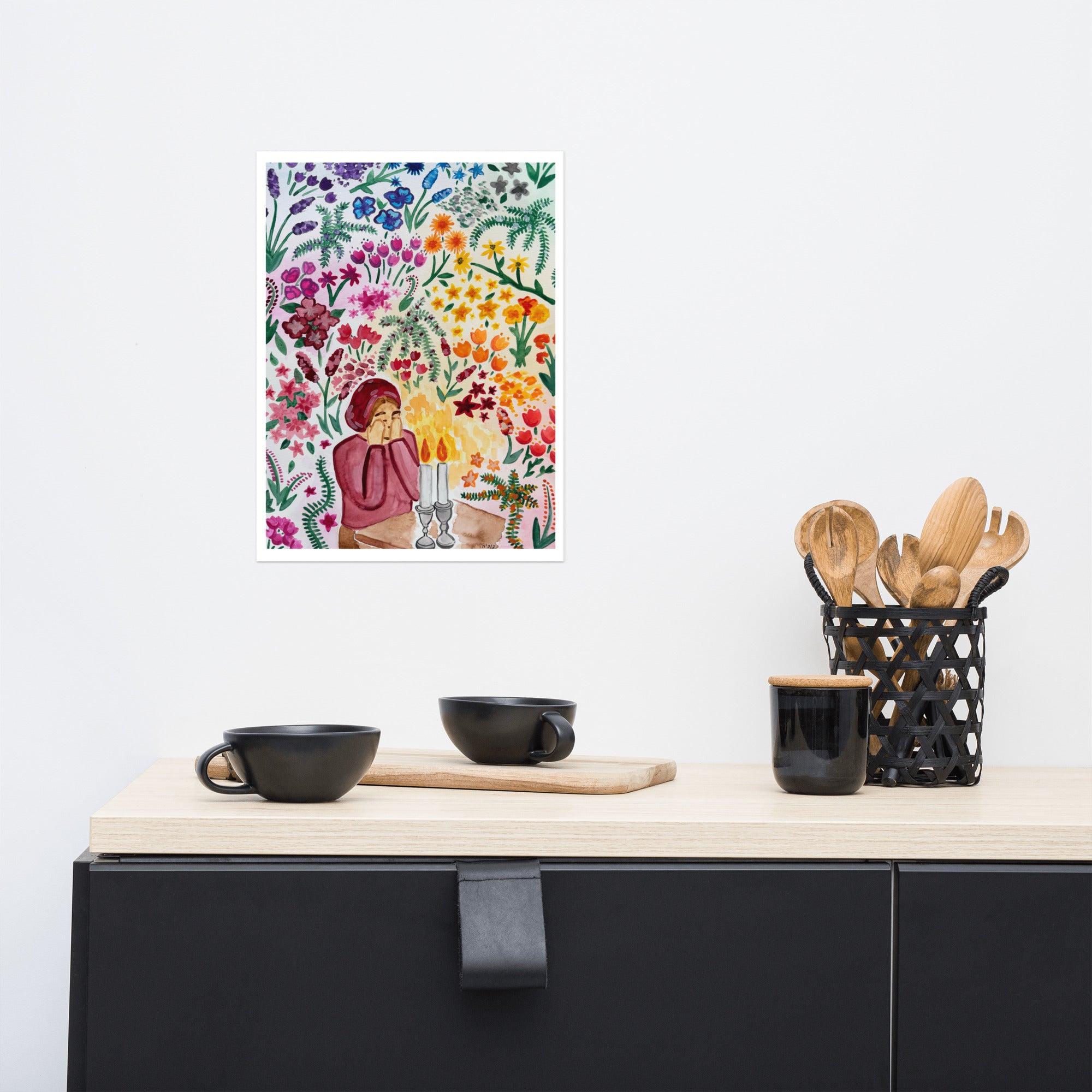 Through one woman's mitzvah, we are able to create worlds. A depiction of a woman lighting shabbos candles, surrounded by a garden growing around her.