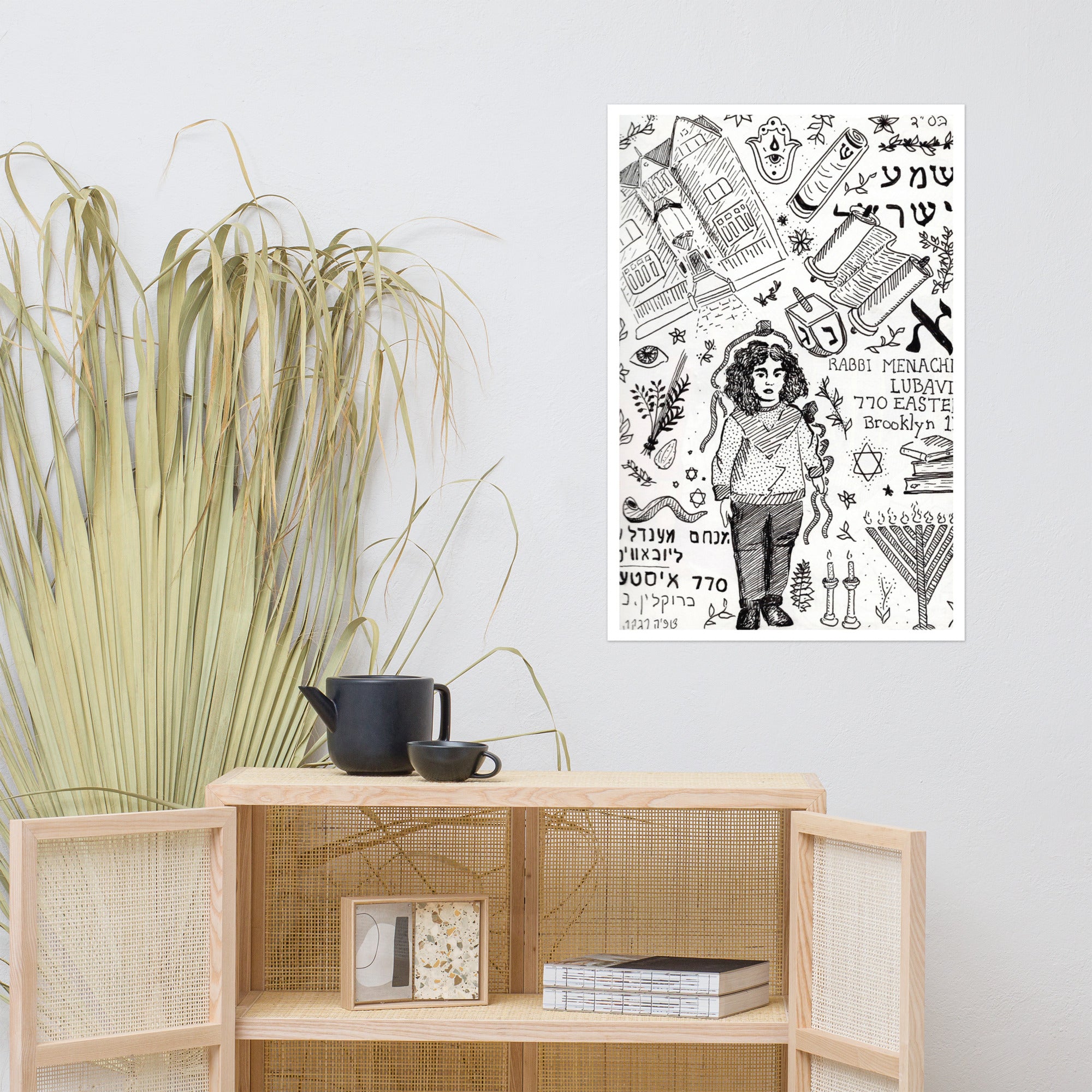 Illustration of the Lubavitcher Rebbe's Upshernish photo from 1905, surrounded by the legacy of mitzvah campaigns which changed the world.