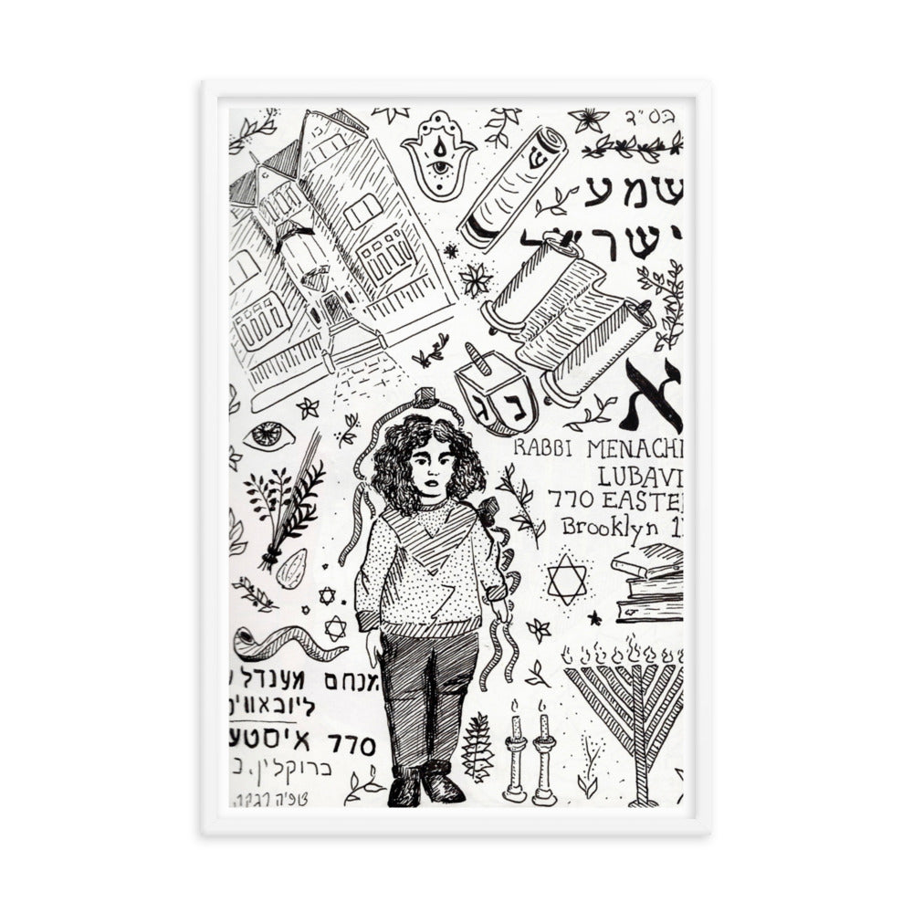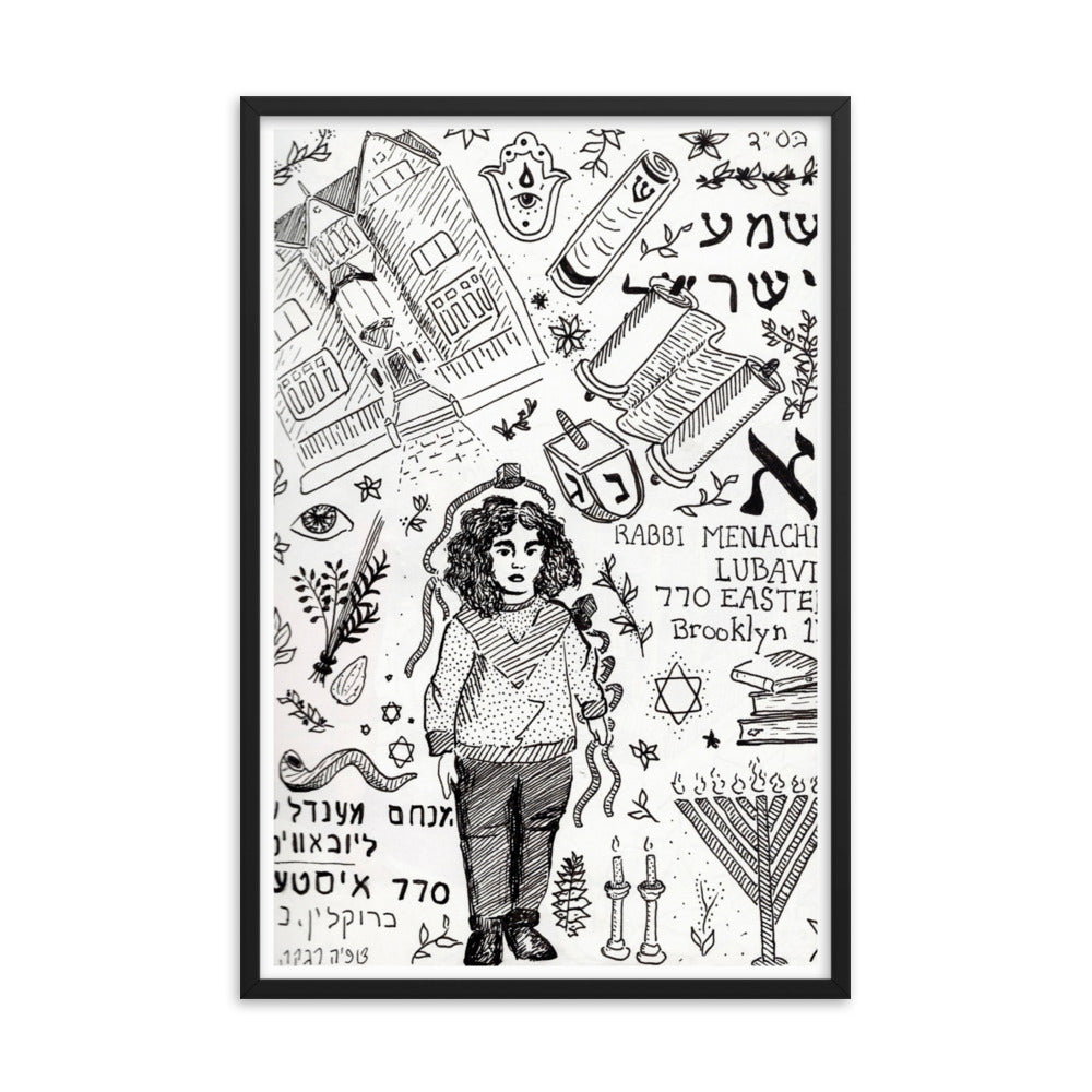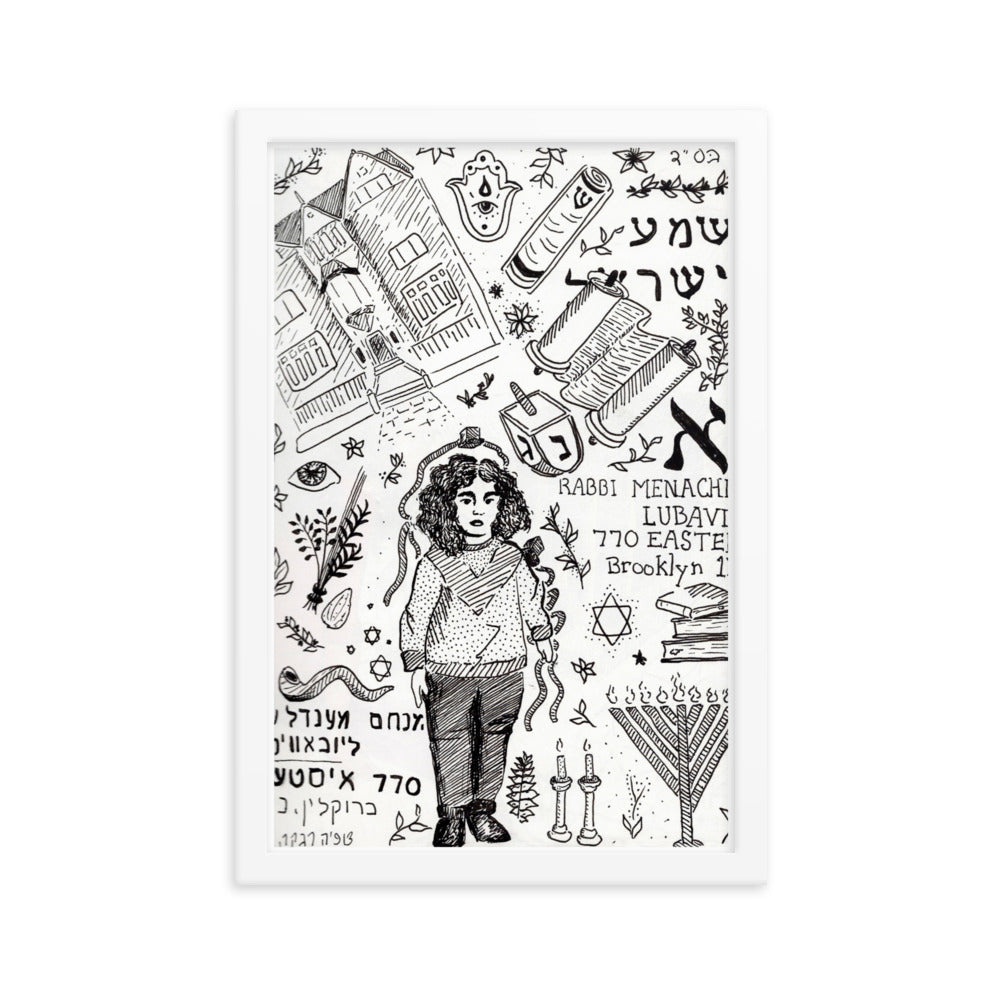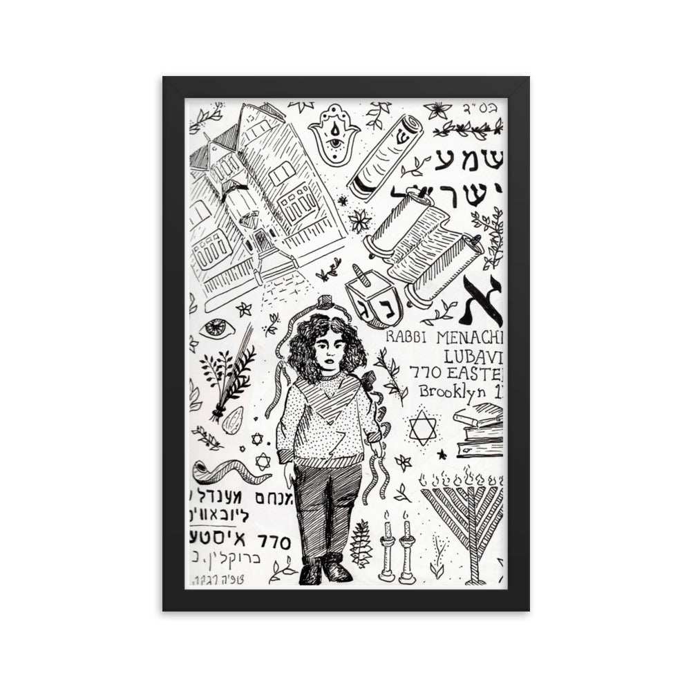Illustration of the Lubavitcher Rebbe's Upshernish photo from 1905, surrounded by the legacy of mitzvah campaigns which changed the world.